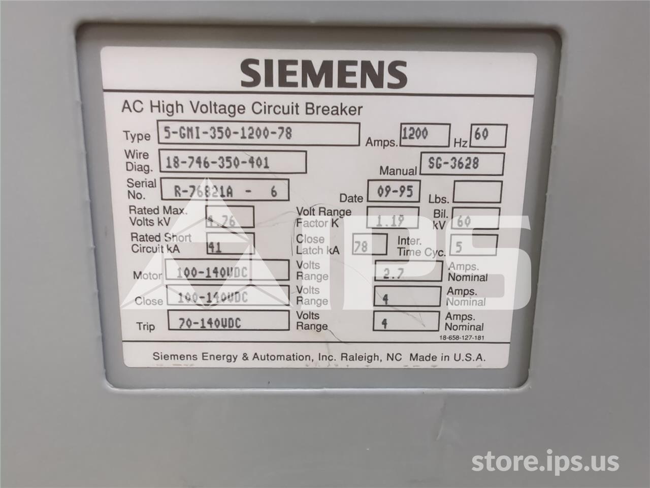 Brand: GE, Condition: USED, "AS-IS", Model: VB 7.2-500-3, Type: VACUUM, Serial: 0308A5522-001-20, Charged: 425, Power Rating: 1200 AMP, 8.25 KV, 60 HZ, 95 KV IMPULSE WITHSTAND, 33 KA RATED SHORT CIRCUIT AMPS, 125 VDC, Weight: APPROXIMATELY 550 LBS., Category: AIR / VACUUM BREAKERS, ERC #: MO-2645, Job #: 065 ...more