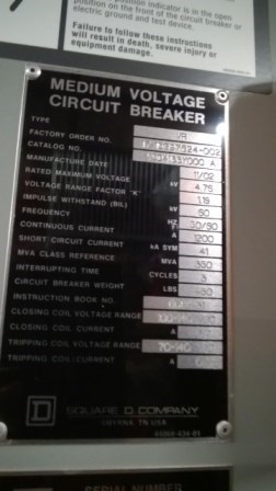 2000 Amps, Square D, VR, V5D3253Y000, 5 KV, 250 MVA, with gear
