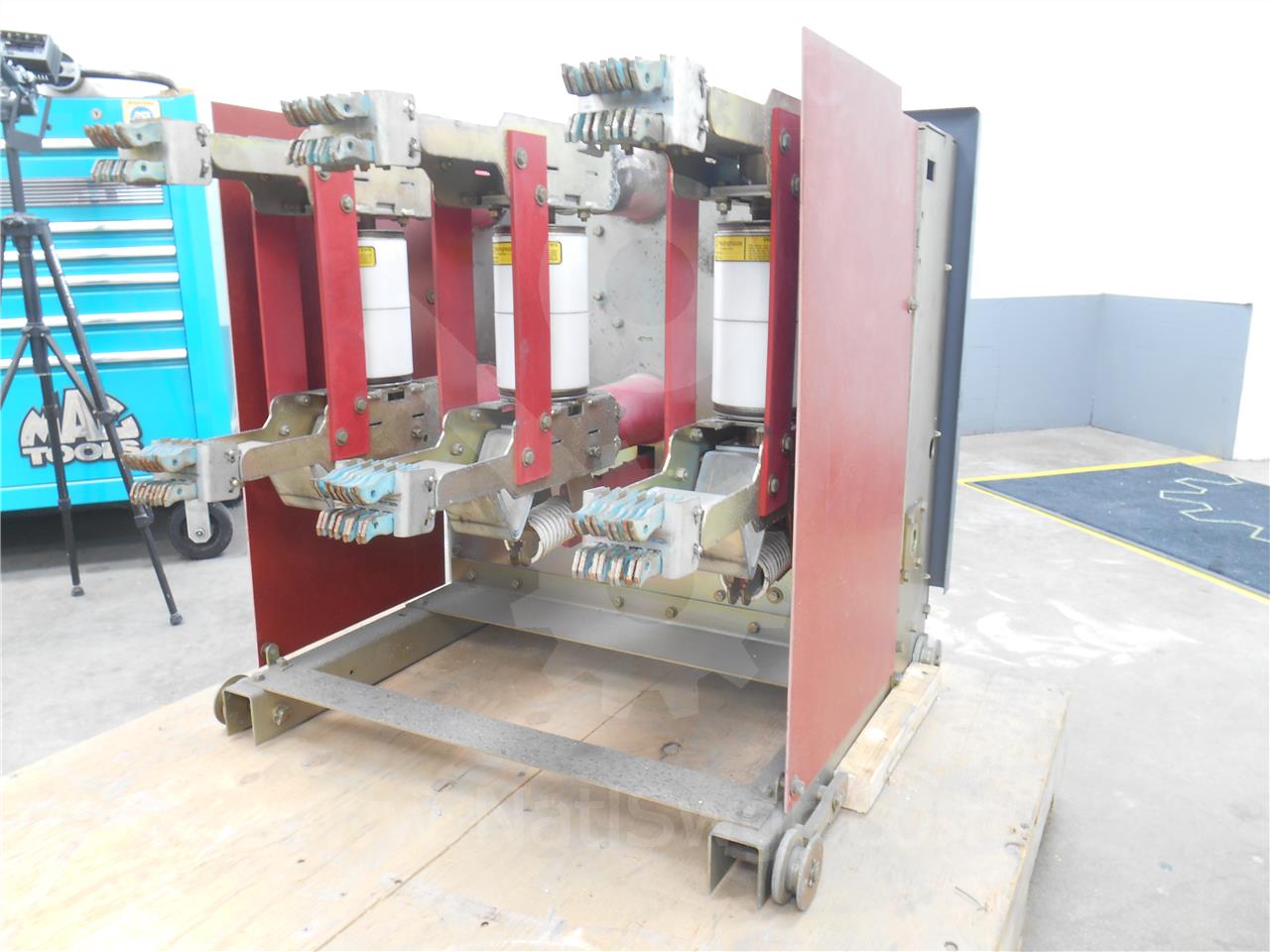 Brand: GE, Condition: USED, "AS-IS", Model: VB 7.2-500-3, Type: VACUUM, Serial: 0308A-5522-001-03, Charged: 1004, Power Rating: 1200 AMP, 8.25 KV, 60 HZ, 95 KV IMPULSE WITHSTAND, 33 KA RATED SHORT CIRCUIT AMPS, 125 VDC, Weight: APPROXIMATELY 550 LBS., Category: AIR / VACUUM BREAKERS, ERC #: MO-2748, Job #: 065 ...more