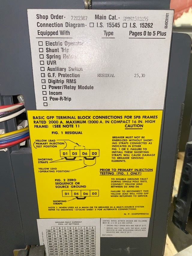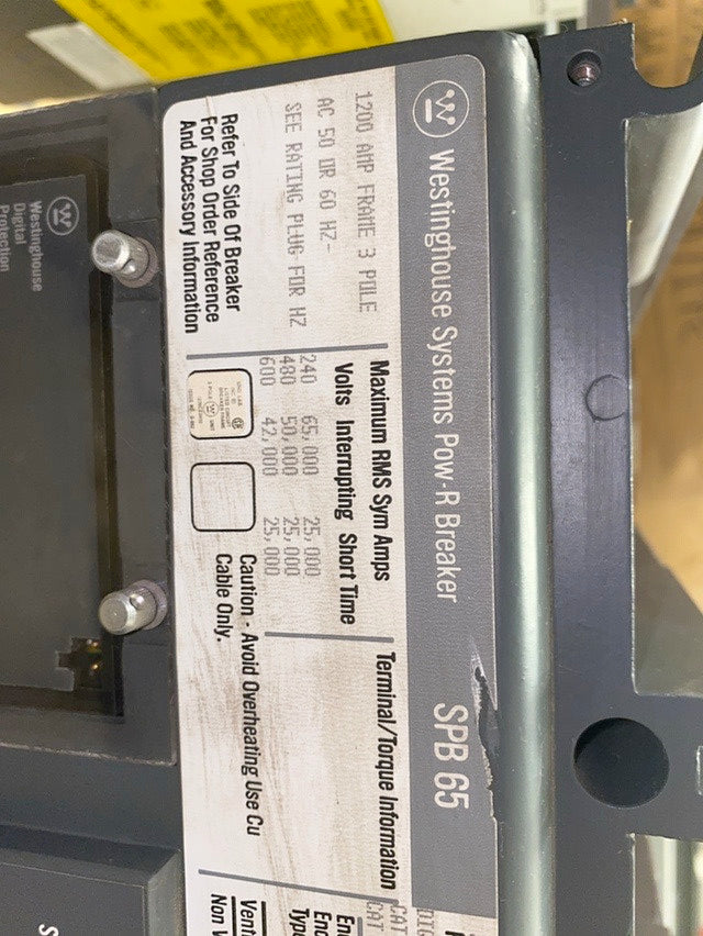 1200A Westinghouse ( Cutler-Hammer ) Pow-R Circuit BreakerDigitrip RMSCAT: PD6S12A100 Unleash a new level of power control with the WESTINGHOUSE SPB 65 1200A PowR Breaker! - Designed for robust functionality with Digitrip RMS for enhanced reliability. - Features a high rating of 1200A catering to extensive electricity needs.- Efficiently safeguards your electrical systems with precision and ease. - Built for durability and long-lasting performance. Perfect for industrial applications, this breaker ensures your electrical distribution remains safe and efficient. Trust in WESTINGHOUSEs legacy of engineering excellence to protect and manage your power systems with utmost confidence. . 30-Day Warranty & Functional Guarantee