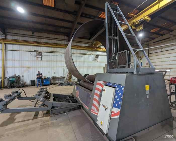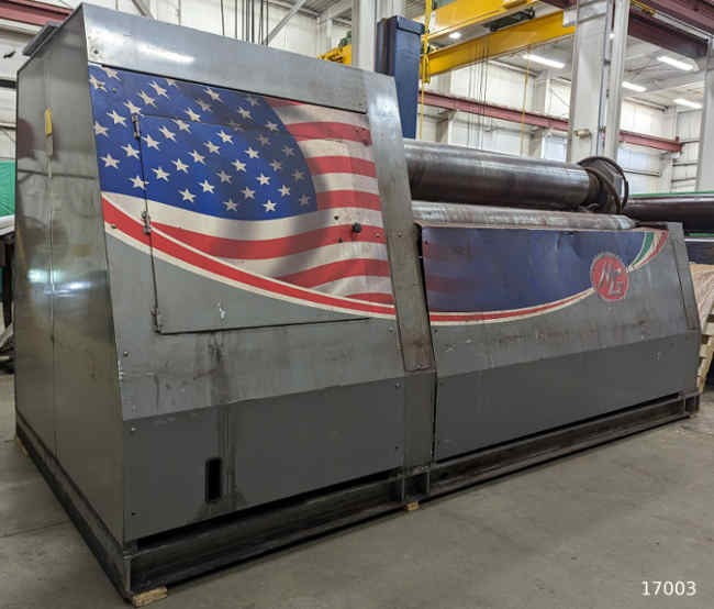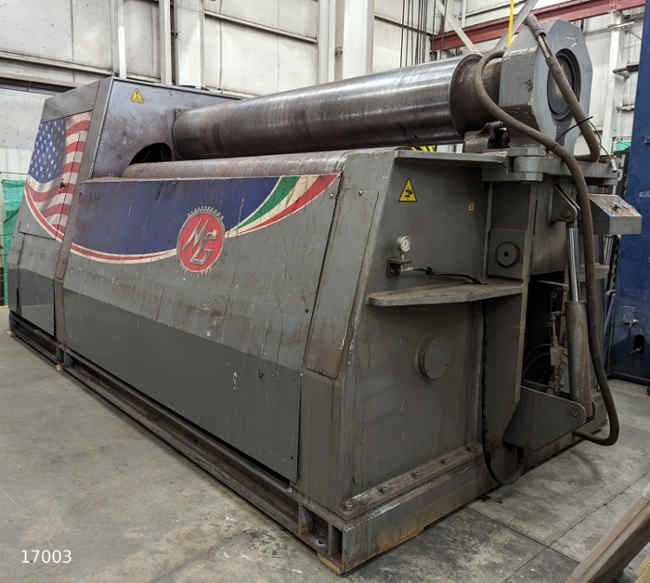 10.2' x 1-3/4" M.g. #MH-345-G, double pinch hydraulic 4-roll bending roll, 40 HP Manufacturer: M.g. Model: MH-345-G Year: 2014 Length': 10.20 CapacityInches or Gauges: 1.75000 Stock # 017003 Price: $225,000 USD Request Info 6 Play VideoFor Sale by SOMINN Machinery Sales Surplus Record Dealer Since 1991 Contact Seller Dodge Center, MN J.J. Francis 507-37...> Show Seller's Phone Number 507-374-6346 Let the seller know you found their listing on Surplus Record! View More SOMINN Machinery Sales ' ListingsDescriptionMG (USED) MODEL MH 345 G DOUBLE PINCH HYDRAULIC 4-ROLL BENDING ROLL122" WORKING LENGTH1-3/4" ROLLING THICKNESS1-3/8" PRE-BEND THICKNESS18.1" TOP ROLL DIAMETER17.3" LOWER ROLL DIAMETER14.6" SIDE ROLLS DIAMETER40 HPMOBILE CONTROL CONSOLEHYDRAULIC SYSTEM FOR OPENING MACHINE/REMOVING TUBESAFETY SYSTEM CONFORMS TO EC RULESEQUIPPED WITH- OVERHEAD SUPPORT- SIDE SUPPORTNOTE: MAXIMUM PERFORMANCES LISTED ABOVE REFER TO SHELLS OF DIAMETER GREATER THAN OR EQUAL TO 3 TIMES THE TOP ROLL DIAMETER AND WITH MATERIAL WITHA YIELD POINT OF 38,500 PSI. Request More Information from SellerInquire Further with SOMINN Machinery Sales! "*" indicates required fieldsName*Company*Email* PhoneZip / Postal Code*QuestionMake an OfferRequests Send me a shipping quote I am interested in financingSend Copy Email me a confirmation of this inquiryBuyer Protection Use our partner Escrow.com to buy or sell equipment safelyBuyer Protection Send me info about buyer protectionThis field is hidden when viewing the formDealer Email Buyers Who Viewed This Listing Also Viewed … 10' x 1-3/4" M.g. #MH-345-G, 18.1" top roll diameter, 17.3" lower roll diameter, 14.6" side rolls diameter, 2014Category: Initial and Double Pinch Plate Bending...Seller: Revelation MachineryLocation: Chicago, IL Mfr: M.g.Model: MH-345-GYear: 2014Make: MG, Model: MH 345 G, Year: 2014, Machine Location: Upon Request, Working Length: 122″, Rolling Thickness: 1-3/4″, Pre-Bend Thickness: 1-3/8″, Top Roll Diameter: 18.1″, Lower Roll Diameter: 17.3″, Side Rolls Diameter: 14.6″, Horsepower: 40, Dimensions: 242″ X 106″ X ...moreJUST ADDED! 10.3' x 1.6" Davi #MCB3045, CNC double initial pinch 4-roll plate bending roll, 2006Category: Initial and Double Pinch Plate Bending...Seller: Yeoman Machinery CorpLocation: elkhart, IN Mfr: DaviModel: MCB3045HYear: 2006 10' x 1.77" Faccin #HAV-3145, 3-Roll Variable Geometry plate bending roll, loaded, 2012, newCategory: Initial and Double Pinch Plate Bending...Seller: North American Machy SalesLocation: Fort Wasington, PA Mfr: FaccinModel: HAV-3145Year: 2012 10' x 1.75" WDM #404-21-10, Hydraulic Initial Pinch Plate Bending Machine, 21" diameter top roll, 22 FPM, NEMA 12, 2-roll drive, hydraulic drop end, NEWCategory: Initial and Double Pinch Plate Bending...Seller: Smith Machinery CoLocation: Ames, IA Mfr: WdmModel: 404-21-10NOMINAL ROLL DIAMETER -------------------- 21", RATED ROLLING CAP. (MILD STEEL) ---------- 1 3/4” mild steel plate to 84” diameter x 10' wide, APPROXIMATE WEIGHT ----------------------- 71,500 LBS, S:, • 4140 Pre HT steel rolls • Electric gear motor driven rolls which provides fast start ...more 10' x 1-3/4" WDM #403-(25)-19-10, 19" top roll diameter, 25" bottom roll diameterCategory: Initial and Double Pinch Plate Bending...Seller: C.W. Wood Machinery IncLocation: Cincinnati, OH Mfr: WdmModel: 403--19-10MODEL: 403-(25) 19-10, Four Roll Double Pinch, Total Hydraulic Operation, Infinitely Variable Roll Speed, Overload Protection, Safety/Emergency Stop Cable, Hydraulically Actuated Drop End, Top Roll Diameter: 19", Bottom Roll Diameter: 25", *Machine as equipped is guaranteed to form a 1-3/4" thick mild steel plate to ...moreShare × "*" indicates required fieldsYour Name*Your Email* Recipient's Email* Note to Recipient