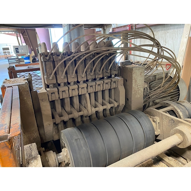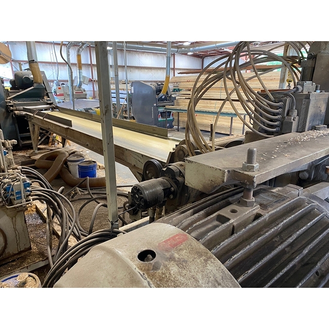 YATES AMERICAN - B-26: Top & Bottom Rough Lumber Planer24" x 4" Opening cap.; 3/4" - 4" thickness capacity; 46" min. unbutted length capacity. -- (1) 75 HP DMD Motor power hoisted top head; (1) 40 HP DMD motor bottom head; 8" dia. cutting circle at 3,450 RPM. -- 2 HP Hydraulic power unit; variable feed rate: 75 - ...more