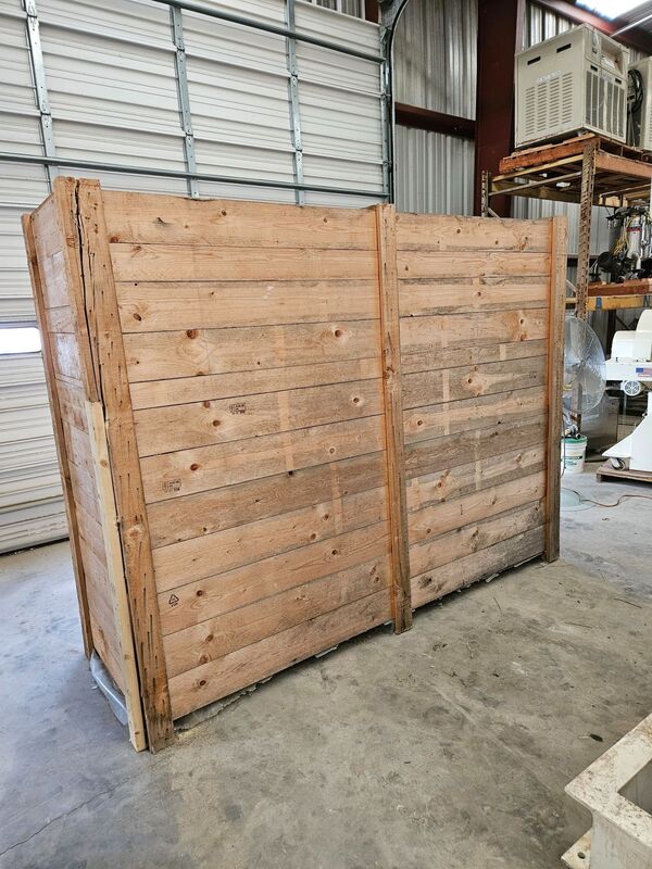 Used Approx. 125 cu/ft Agitator Top Rotor: 1hp Sumitomo Motor/Gearbox, 424:1 Gearbox Ratio Button Discharge Auger: 2hp Motor, 1740 rpm 1kw Discharge Valve Control Cabinet with Speed Pod Dimensions: 106.5" x 90.5" x 110" Catwalk with Stairs Mixing Area: 60" x 60" x 67.5" Deep.