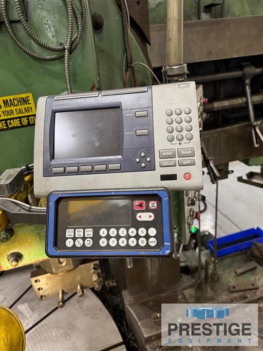 Table Diameter (4-Jaw): 168", Max Swing: 234", Height Under Rail: 108", Speeds (variable): 0 - 27 RPM, Ram Travel: 60", Ram Swivel: 45 Degrees, Motor( 280 VDC): 75 HP, Table Weight Capacity (Est.): 40 - 50 Tons, (2) Rams On Rail, Free Standing Hydraulic Unit, Updated Electrics with HMI Panel interfaced to PLC ...more