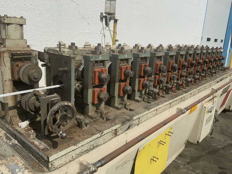 This listing is for a Tishken 14-MW-2 Roll former., Manufacturer: Tishken, Model: 14MW-2, Serial: 11245-664, Number of stands: 14, Arbor diameter: 2", Roll space: 8", Center distance between stands: 12", Center distance between arbors: 5-1/2" to 7", Base to bottom spindle center: 5", Keyways width:.375", Capacity (max ...more