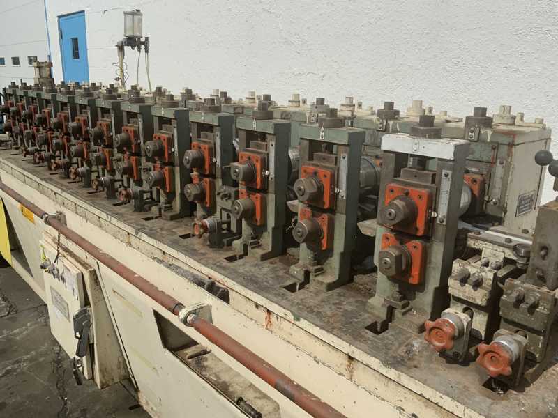 Stations 14, Vertical Center Distance 4", Horizontal Center Distance 8", Roll Space 10", Main Drive 10 hp, Line Speed 60 fpm, Spindles Hardened & Ground, Shoulder Type w/ Thrust Bearings, Spindle Size (bearings) 1.5", Spindle Size (roller dies) 1.5", Bearings Torrington HJ Heavy Duty Needle, 5000 Lbs.