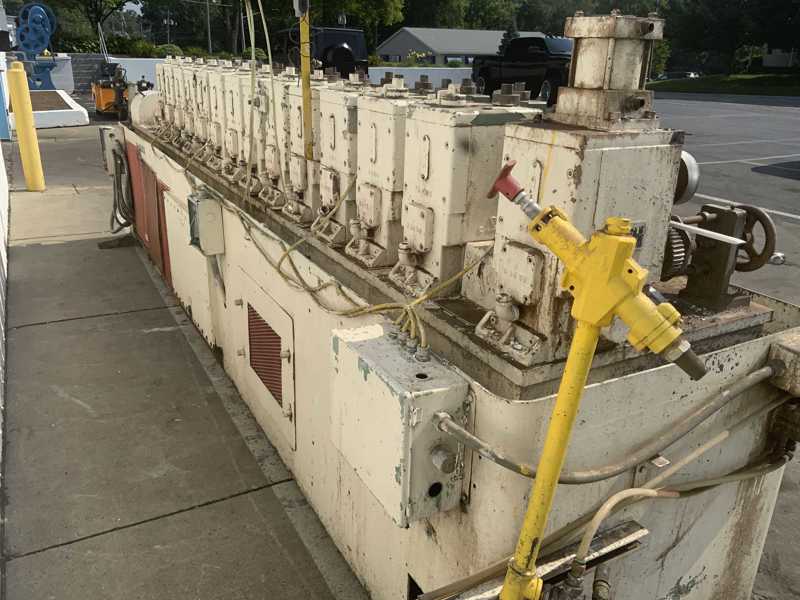 Manufacturer: Bradbury, Model No: 425, Spindle diameter: 3-1/2", Vertical Adjust: 6-14", Horizontal Centers: 22", Roll Space : 30", Drive Motor:: 50HP, Max Speed: 200 fpm, Number of Stands: 12 and 12 (Duplex), C Web 6", 8", 10" x 2.5" Flange, Z Web: 6", 8", 10", 12" x 2.5" Flange.
