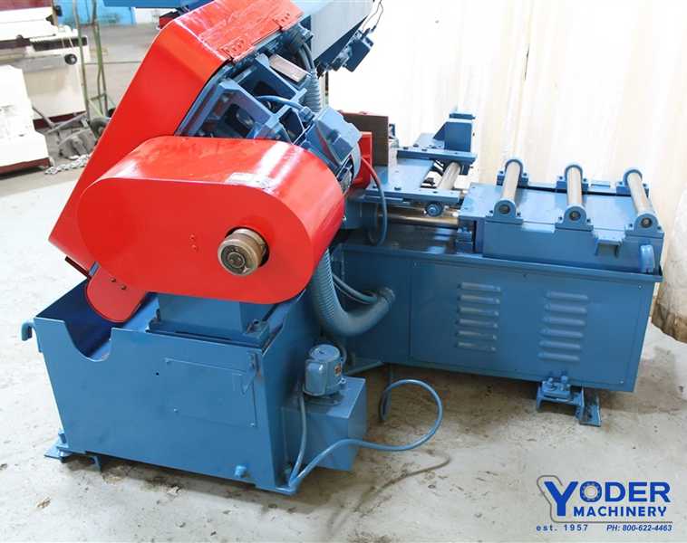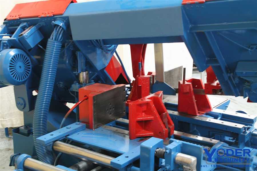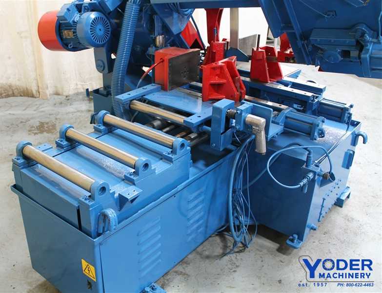 Spec, Capacity: Round, 90°: 14″, Blade Size: 1 1/4” x 15’ 2”, Blade Drive: 8.8 HP VFD, Machine Voltage: 480 v (all other voltages require optional transformer), Blade Speed: 49-380 SFM, Automatic Multi-Indexing: 0-24″, Remnant Length: 4.7″, 11″ w OH bundling, Machine ...more