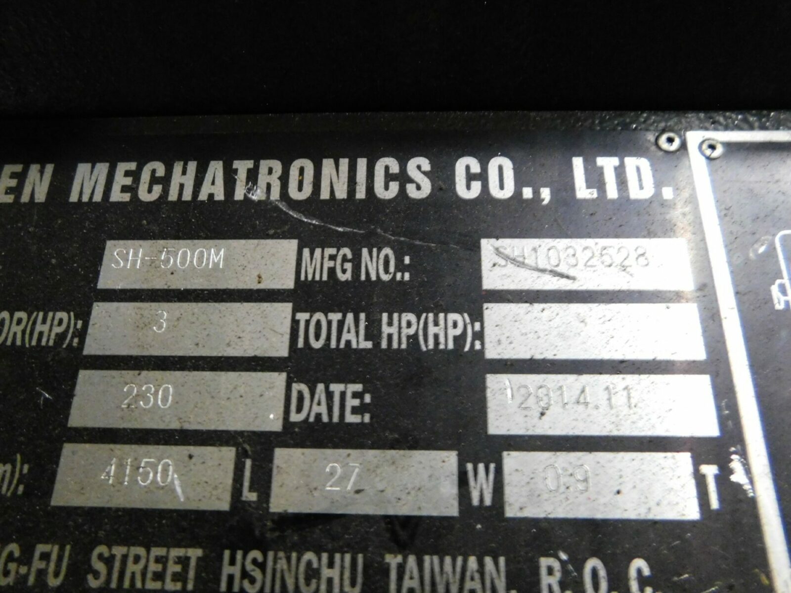 Make: Hyd-Mech, Model: S-20, Year: 2010, Machine Location: Illinois, Cutting Capacity, Rectangular 13″ High x 18″ Wide, Round 12″ dia @ 45 deg, Blade length 13′ 6″, Width 1 ” (1.075″ including teeth), Thickness 0.032″, Blade wheel diameter 16″, Motors, Standard 2 ...more