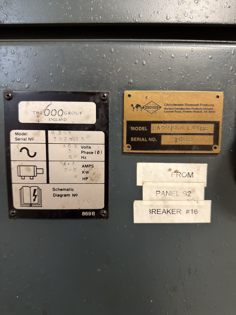 16" x 36" Harrison #M300, Engine Lathe, 3-jaw chuck, digital read out