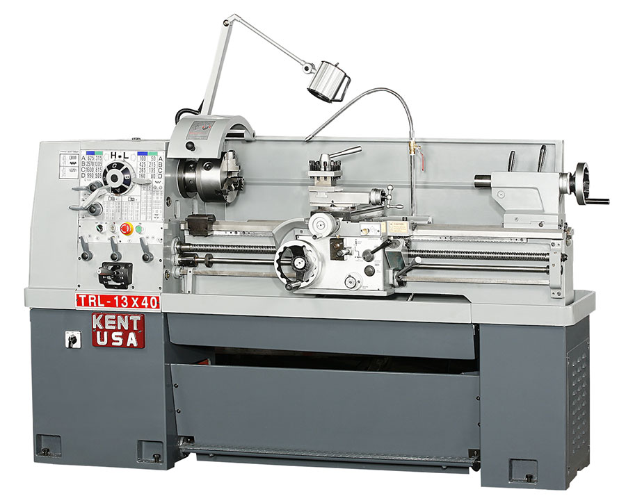 13" x 40" Kent USA #TRL-1340/1340V & SSM-1340BV, Manual Precision Lathe, new, #12777, 12778 (2 available) Manufacturer: Kent Model: TRL-1340/1340V Swing: 13.0 Centers: 40.0 Stock # 12778 Request a Quote For Sale by Blumberg Machinery Co Surplus Record Dealer Since 1971 Contact Seller Bannockburn, IL Jerry/ Ryan 847-58...> Show Seller's Phone Number 847-580-6800 Let the seller know you found their listing on Surplus Record! View More Blumberg Machinery Co 's ListingsDescription13" x 40" KENT USA TRL-1340/1340V MANUAL PRECISION LATHE - NEWPRODUCT HIGHLIGHTSHeaviest duty 13 lathe in its class5 HP main spindle motor16 speeds, geared headstock (TRL-1340) (50 2570 RPM)Infinitely variable speed in Hi/Low geared speed ranges (TRL-1340V) (100-500-3000 RPM)Jog button for easy gear changesHardened and ground gears and bedwaysCast iron machine bedways and baseRemovable chip pan for easy clean upFoot brake and T-Slot compoundInch/metric reading on dialsInch/metric ruler on tailstock quillISO 9001 certified manufacturerSTANDARD ACCESSORIES3-jaw chuck (7)Steady restFollow rest4-position tool postCoolant systemFull-length splash guardWorklightChuck coverThread chasing dialToolbox with standard toolsOPTIONAL ACCESSORIES4-jaw chuck (8)Digital Readout SystemRoyal spindle type live centerBTC 3-jaw chuck with back plateTaper turning attachmentRustlick coolantSwing Over BedSwing Over Cross SlideSwing Over GapWidth of BedDistance Between CentersCross Slide TravelTop Slide TravelSpindle SpeedsSpindle Speed RangeThrough Hole DiameterSpindle NoseSpindle Bore TaperThread Standard (Whit-worth)Thread Metric PitchLongitudinal FeedCross FeedLead Screw DiameterThreading PitchQuill TravelQuill DiameterQuill Bore TaperMain MotorCoolant Pump MotorMachine DimensionPacking DimensionMachine weightPacking weightTRL-134013-3/8"8.25"20"9"40"7"4"1650-2570 RPM1-9/16"ASA D1-4 CamlockMT#545 (2-72) TPI39 (0.2-14) mm.002" - .067".001" - .0375"1-1/8"4 TPI4"2"MT#35 HP1/8 HP81.5" x 32" x 56"90" x 37" x 60"2000 LBS2440 LBS Request More Information from SellerGet Your Price from Blumberg Machinery Co! "*" indicates required fieldsName*Company*Email* PhoneZip / Postal Code*QuestionMake an OfferRequests Send me a shipping quote I am interested in financingSend Copy Email me a confirmation of this inquiryBuyer Protection Use our partner Escrow.com to buy or sell equipment safelyBuyer Protection Send me info about buyer protectionThis field is hidden when viewing the formDealer Email Buyers Who Viewed This Listing Also Viewed …JUST ADDED! 13" x 40" South Bend #13L, Toolroom LatheCategory: Engine LathesSeller: S and R MachinesLocation: Bristol, CT Mfr: South BendModel: 13LeBay working more photos please ask, SHIPPING IS AN ESTIMATE.JUST ADDED! 13" x 40" Bridgeport, Romi #Tormax-13-5, toolroom lathe, 7.5" swing over cross slide, inch/metric, 3 & 4-jaw chucks, 2002Category: Engine LathesSeller: Belmont Machinery CoLocation: Aurora, IL Mfr: BridgeportModel: TORMAX-13-5Year: 2002JUST ADDED! 13" x 40" Sharp #1340, engine lathe, 7-25/32" swing over cross slide, coolant with chip pans, 2 HP, #3MTCategory: Engine LathesSeller: Yoder Machinery SalesLocation: Holland, OH Mfr: SharpModel: 1340SERIAL. 23503, MODEL. 1340, SWING OVER WAYS. 13", SWING IN GAP. 18-3/4", LENGTH OF GAP. 8-1/8", SWING OVER CROSS SLIDE. 7-25/32", DISTANCE BETWEEN CENTERS. 40", SPINDLE SPEEDS. 45 TO 1800 RPM, DIAMETER OF SPINDLE HOLE. 1-1/2", INCH THREADS. (40) 4 TO 112 TPI, METRIC THREADS.45 TO 7.5 MM PITCH, FEEDS LONGITUDINAL.0012 ...more 13" x 40" Liberty #TRL-1000, Toolroom Lathe, 8" 3 & 4-jaw chucks, 12" faceplate, 1.5" bore, 3 HP, 2000 RPM, Ditron 2-Axis digital read out, 220 Volt, 1PHCategory: Engine LathesSeller: Trader Machinery IncLocation: Concord, ON Mfr: LibertyModel: TRL-100013"40"1-1/2"80 - 2000 RPM3 HP220 VOLT / SINGLE PHASE. 13" x 40" Clausing Colchester #13, variable speed lathe, 8-1/4" swing over cross slide, 1-5/8" bar, 1-21/32" bore, threading, 4 HPCategory: Engine LathesSeller: Norman Machine Tool LtdLocation: Baltimore, MD Mfr: ClausingModel: 13Clausing Colchester 13″ x 40″ Geared Head Lathe, Inventory # 9983, Model: 13, S/N: 5/0014/13066, Made in England, Swing Over Bed: 13 1/4″, Swing Over Cross Slide: 8 1/4″, Bar Capacity Thru Spindle: 1 5/8″, Distance Between Centers: 40″, Spindle Nose: 4″ D-1 Camlock, Hole Thru ...moreShare × "*" indicates required fieldsYour Name*Your Email* Recipient's Email* Note to Recipient