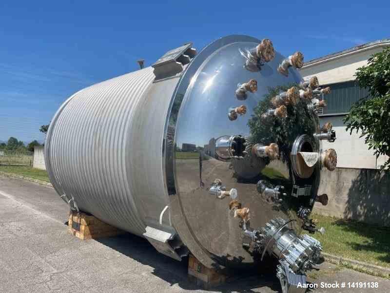 13200 gallon Borghi Srl, Reactor, 304L Stainless Steel, 11.2' diameter x 19.7' height, 87 psi internal, 174 psi halfpipe, sanitary polish, top & bottom, unused Gallons/Liters: 13200.0 Pounds per Square Inch: 87 Stock # 14191138 Request a Quote 8 For Sale by Aaron Equipment Co Surplus Record Dealer Since 2024 Contact Seller Schaumburg, IL Ken Matuszak 708-41...> Show Seller's Phone Number 708-412-6077 Let the seller know you found their listing on Surplus Record! View More Aaron Equipment Co 's ListingsDescription unused 13200 gallon 304l stainless steel reactor. manufactured by borghi srl. 12500 gallon working capacity. internal mawp 87 psi @400f. halfpipe mawp 174 psi @400f. half pipe on bottom half of shell and bottom head. sanitary polished internal and exterior top shell. dome top and bottom with 2" center bottom outlet. top flange and (4) internal baffles with vortex breaker. (4) lug mounted. does not include motor and agitator. 20" top manway. dimensions 11.15 ft dia x 19.69 ft tall. weight 28660. our freight specialists can assist you with door to door transportation and all customs documents needed to make the process go as smoothly as possible. Request More Information from SellerGet Your Price from Aaron Equipment Co! "*" indicates required fieldsName*Company*Email* PhoneZip / Postal Code*QuestionMake an OfferRequests Send me a shipping quote I am interested in financingSend Copy Email me a confirmation of this inquiryBuyer Protection Use our partner Escrow.com to buy or sell equipment safelyBuyer Protection Send me info about buyer protectionThis field is hidden when viewing the formDealer Email Buyers Who Viewed This Listing Also Viewed … 12480 gallon Reactor, w/ Jacket & Dual Internal Coils, 316L Stainless Steel, 87 psi internal, 174 psi jacket, dome top & bottom, unusedCategory: Stainless Steel Tanks and VesselsSeller: Aaron Equipment CoLocation: Schaumburg, ILunused 316l 12480 gallon stainless steel reactor with jacket and double internal coils. manufactured by over srl. internal mawp 87 psi @ 400 degrees f. halfpipe jacket mawp 174 psi @ 400f. (1) 1" internal coil mawp 174psi/fv@400f. (1) 2" internal coil rated mawp 174psi/fv@400f. sanitary polished internal and exterior ...moreJUST ADDED! 12,500 gallon JV Northwest, Stainless Steel Jacketed Cone Bottom Tank, 11' diameter x 29' heightCategory: Stainless Steel Tanks and VesselsSeller: Perry Videx LLCLocation: Hainesport, NJ Mfr: Jv NorthwestUsed Approximately 12,500 Gallon Stainless Steel Jacketed Tank, Manufacturer: JV Northwest, Dimensions: 11' dia. x 29' overall height, Dished top, cone bottom, Glycol Jacketed, Zwickel Valve, CIP, and Racking Arms, Mounted on stainless steel legs, JV NORTHWEST 12,500 GALLON, Capacity. 12,500 gal, Diameter. ...more 12000 gallon Stainless Steel TankCategory: Stainless Steel Tanks and VesselsSeller: Global Equipment InternationalLocation: Chalfont, PAUsed 12,000 gallon vertical, T-316 S/S tank., Manufacturer STAINLESS SLEEL TANK Condition Used Stock Number 904723.014MA. 12400 gallon Quality Tank Solutions, 304 Stainless Steel Jacketed Tank, inner size 138" diameter x 204" H, dish top, cone bottom w/ jacket, 2 zone sides, 50 psi @250°F, 2013 (2 available)Category: Stainless Steel Tanks and VesselsSeller: Federal Equipment CompanyLocation: Cleveland, OH Mfr: Quality TankUsed 12,400 gallon (400 BBL) Quality Tank Solution jacketed tank, 304 stainless steel construction, approximately 138" inner diameter x 204" straight side, dish top, 87" deep, 60 degree cone bottom, 2 zone jacketed on side and 1 zone jacket on bottom cone, rated 50 psi at 250 f, on legs, serial# 003-10099-400-FRM-04 ...more 12000 gallon Alloy Fab, Stainless Steel mixing tank, 12' diameter, 15' 8" length, internal coils, flat bottom tank with agitatorCategory: Stainless Steel Tanks and VesselsSeller: EcReCon Inc.Location: Pedericktown, NJ Mfr: Alloy Fab, 12,000 gallon Stainless steel Mix tank with internal coils. Built by Alloy Fab. Flat bottom tank with agitator, 7.5 HP, 460 V, 750 RPM into gearbox. There are 2 loops of internal heating coils which are 2". 216" total height, 188" sidewall. 144" diameter. Ports: Top: 1x 8" 150lb flange, 3x 1.5" threaded and 2x 3" ...moreShare × "*" indicates required fieldsYour Name*Your Email* Recipient's Email* Note to Recipient
