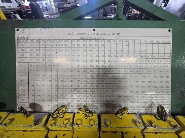 MODEL: 144F, SERIAL #: 70205, CAPACITY – MILD STEEL: 4’ x 14 GAUGE, CAPACITY – STAINLESS STEEL: 4’ x 18 GAUGE, OVERALL BENDING LENGTH: 48”, CLEARANCE THRU TOP OPENING: 1-5/8”, MIN.REVERSE BEND: ¼”, MAXIMUM BEND ANGLE: 135 degrees, BOX DEPTH: 6”, FINGERS: ...more