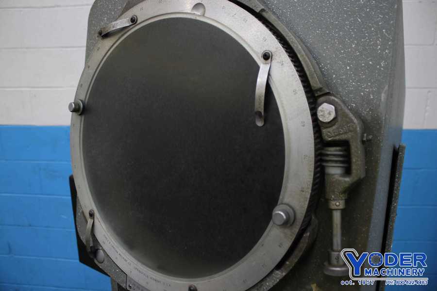 Table Size: 16" x 6", X-Axis Travel: 8", Y-Axis Travel: 4", Workpiece Load: 100 lbs, Resolution:.00005", Projected Image: Inverted, Screen Diameter: 14", Screen Material: Fine Ground Glass, Reference Line: Cross Hair, Screen Rotation: +360 Degrees, Fine Feed and Clamp, Angle Display: Vernier Reading, Resolution: ...more