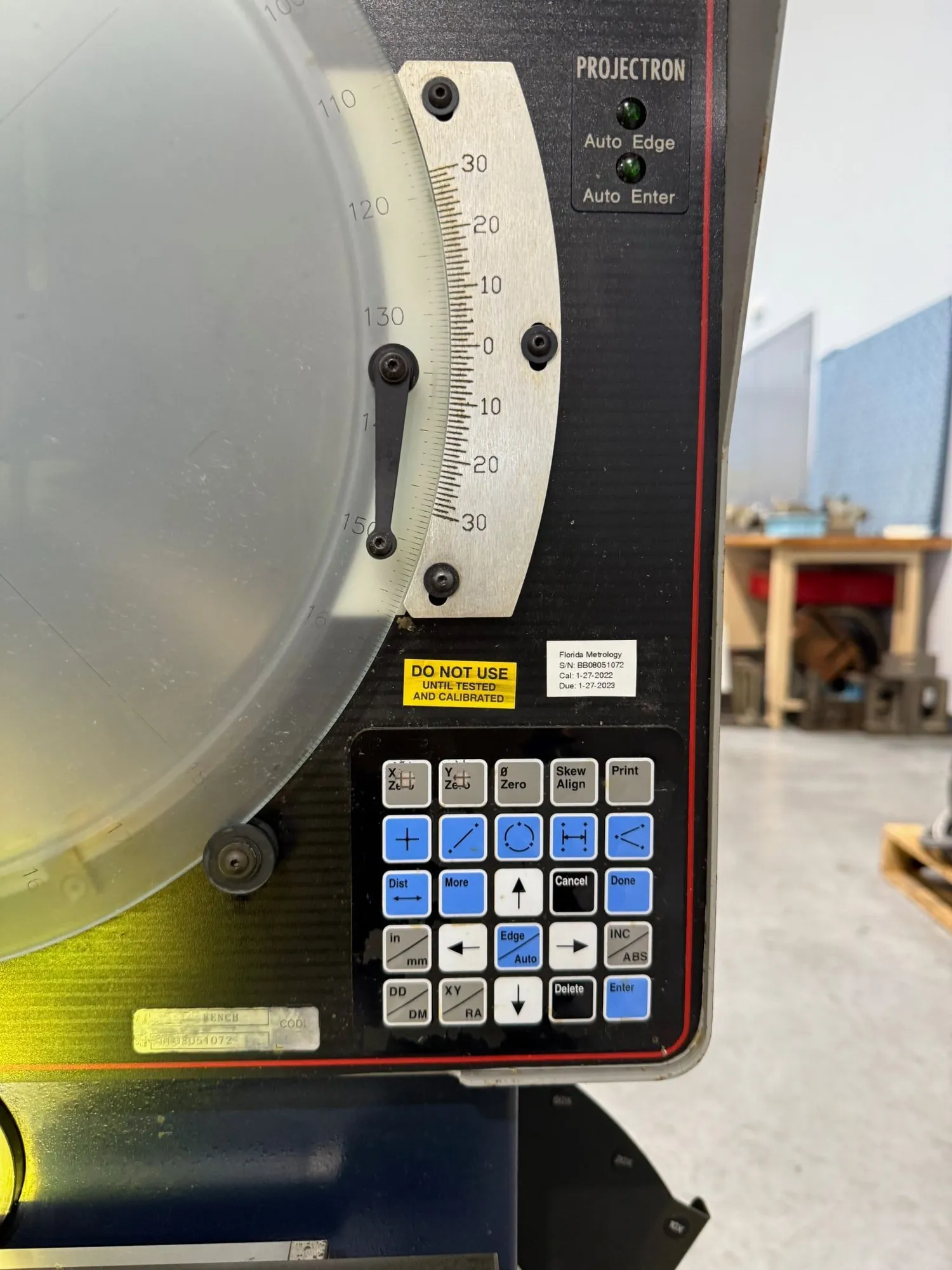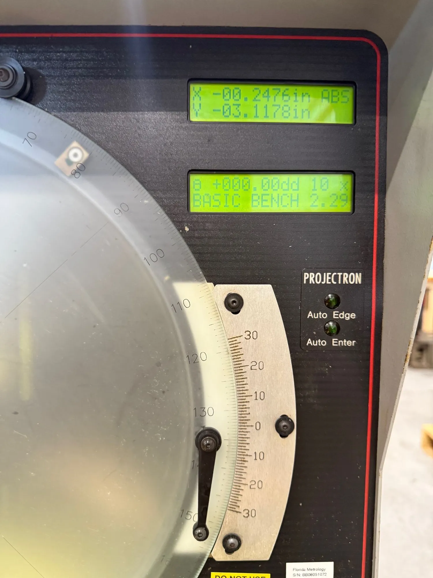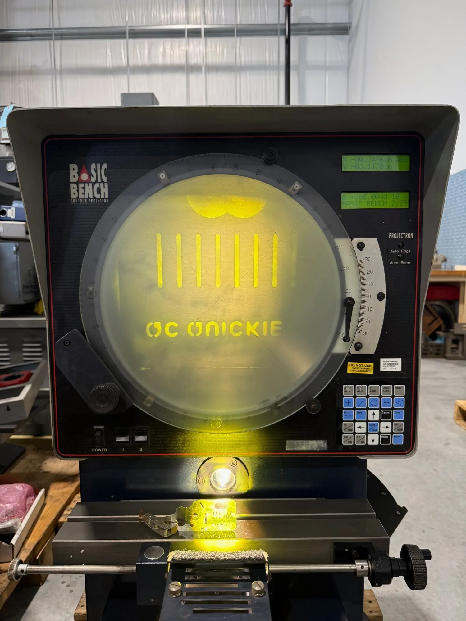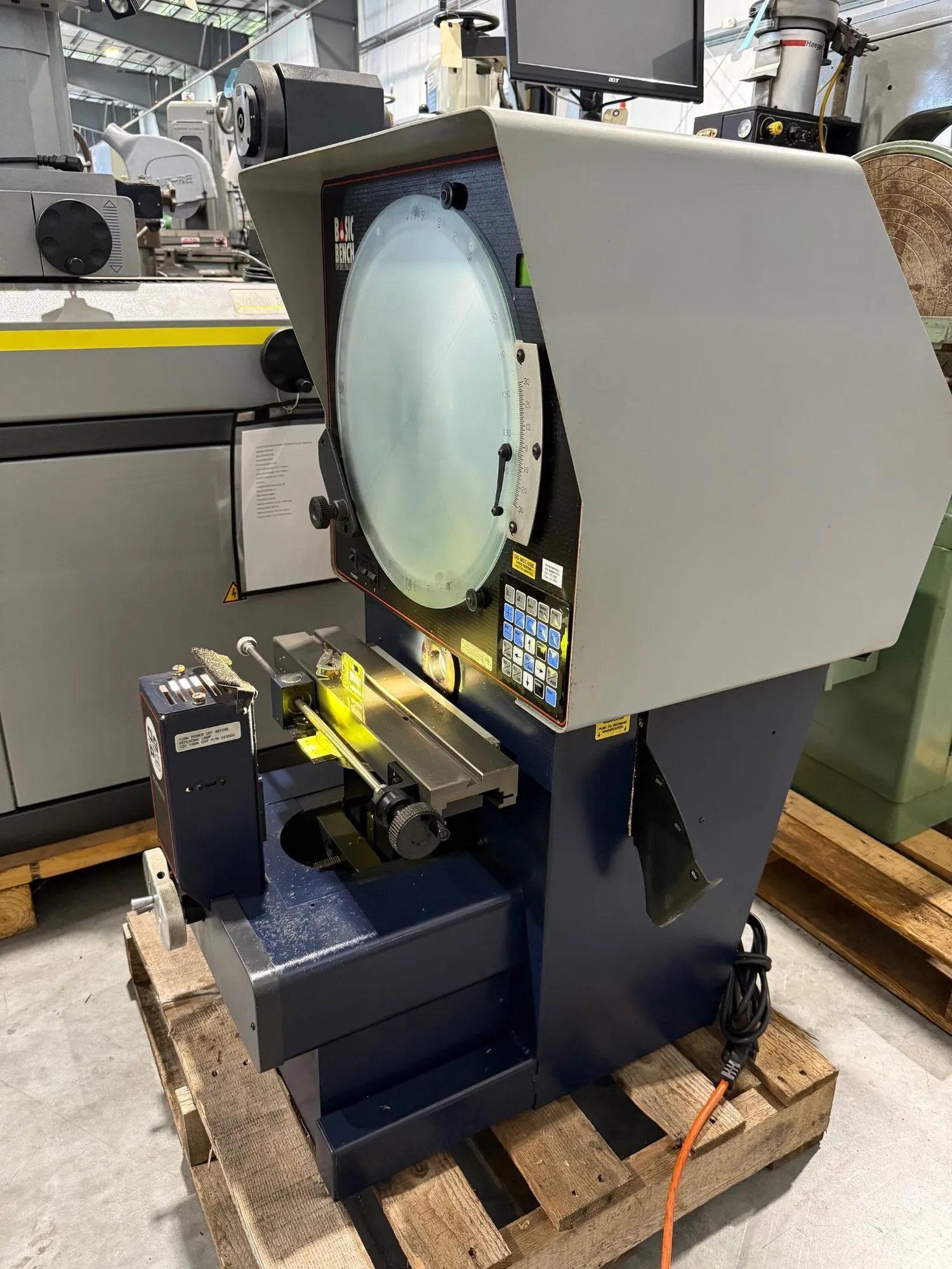 14" STARRETT HORIZONTAL BENCH MODEL OPTICAL COMPARATOR MODEL: HB″50… S/N: 20096… NEW: 2003 SCREEN DIAMETER. 14"TABLE SIZE. 15.3" x 5"WEIGHT CAPACITY ON TABLE. 66 LBS.HORIZONTAL TRAVEL. 8"VERTICAL TRAVEL. 4"FOCUS. 1- 1/2" APPROX. MACHINE WEIGHT. 205 LBS.MACHINE ...more