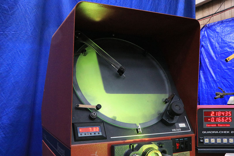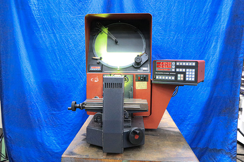 SERIAL., MODEL. HB350, SCREEN DIAMETER. 14", GRADUATIONS. 1 DEGREE, TABLE AREA. 15.35" X 5", X AXIS. 4.1", Y AXIS. 8", FOCUS. 1.5", LENS POWER. 10X, FIELD. 1.40", QUADA CHECK UNITS. YES, PHASE. 1, VOLTAGE. 110.