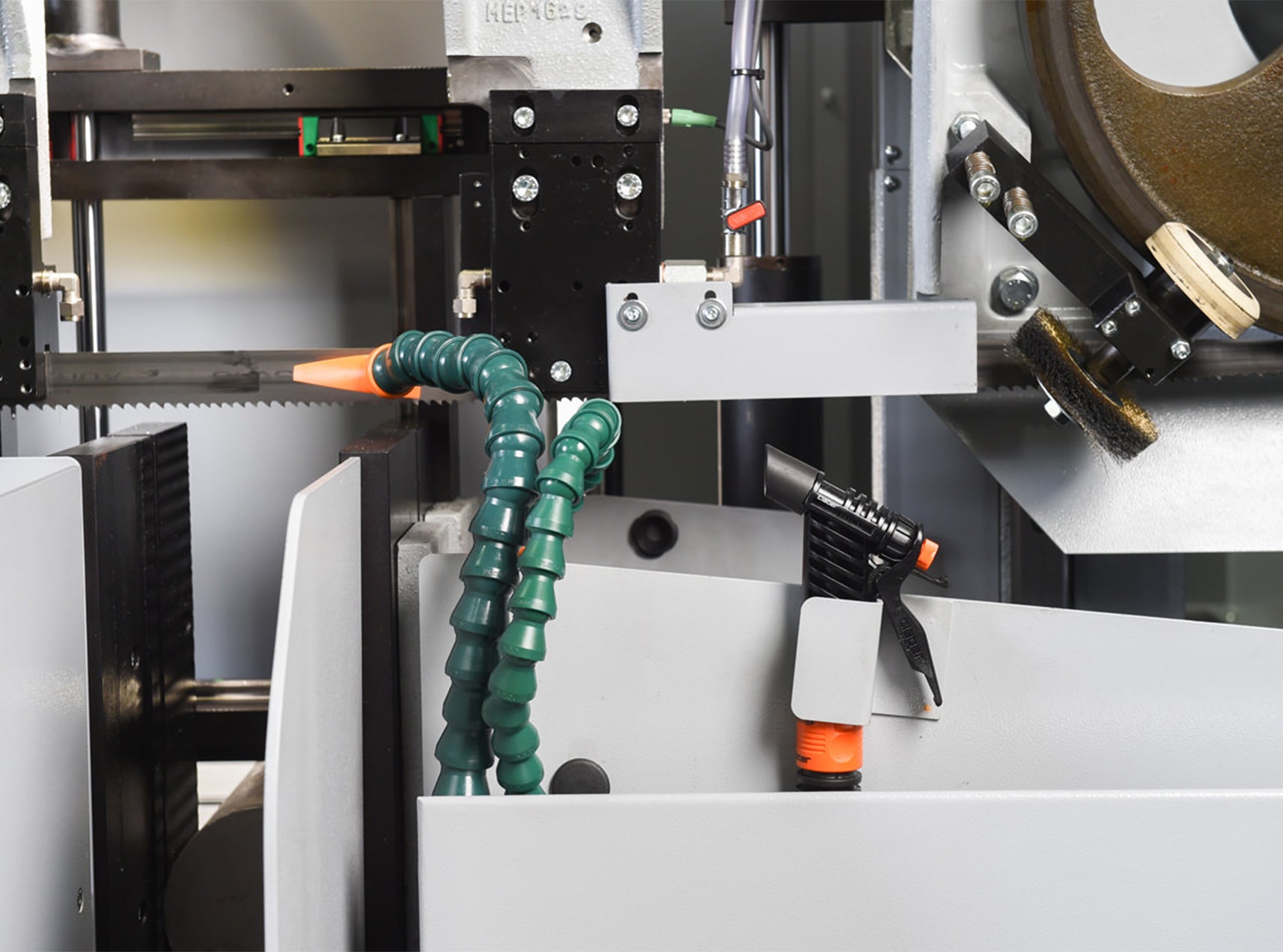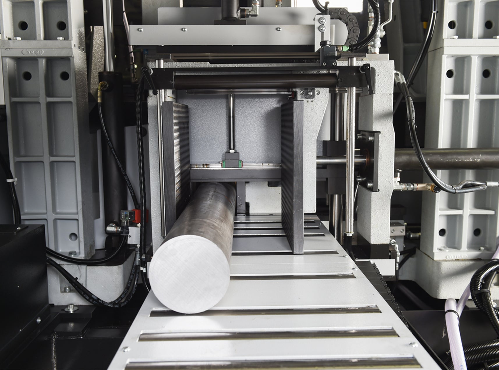 , Heavy-duty cast iron saw head, Split front vise allows for short 4.7” remnant length, Cast iron shuttle s automatic multi-indexing up to 19” in a single stroke w/automatic kerf compensation. Powered, by ball screw and stepper motor., On-demand hydraulics, Steel guide arms mounted on linear rails. ...more