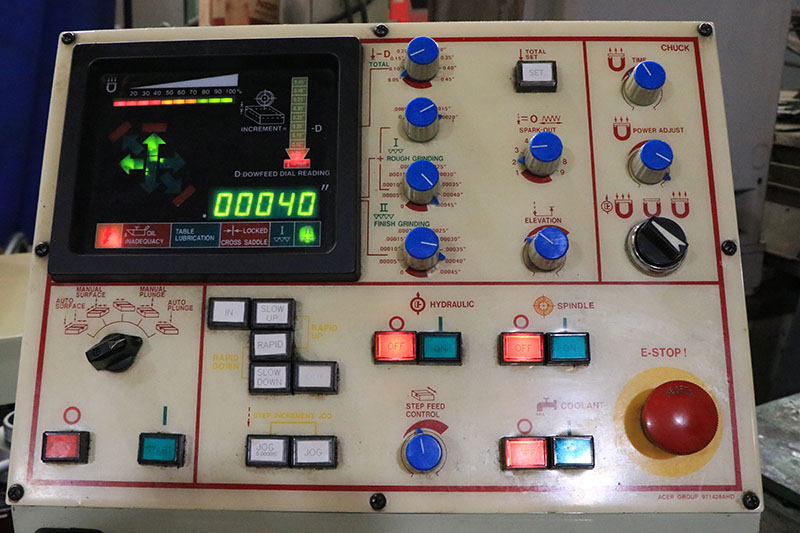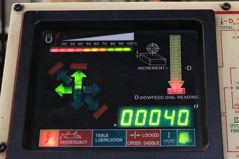 Table Surface: 12" x 24"Maximum Workpiece Height: 13.7"Table Longitudinal Travel: 29.5"Table Cross Travel: 13.6"Foot Pad: 30" x 42"Grinding Wheel Size (OD x W x ID): 12" x 1.5" x 5"Spindle Speed: 1800 RPMTable Longitudinal Feed  Hydraulic: 1 FPM - 100 FPMHand: 1.85"Table Cross Movement  Hydraulic Increment: ...more