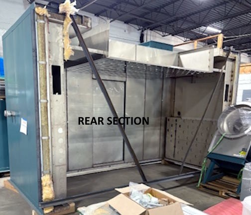 POWDER COATING SYSTEMS 450 F GAS FIRED WALK IN OVEN 14'WIDE X 39'8"LONG X 11'HIGH, DOUBLE DOORS BOTH ENDS. DISASSEMBLED READY TO LOAD.