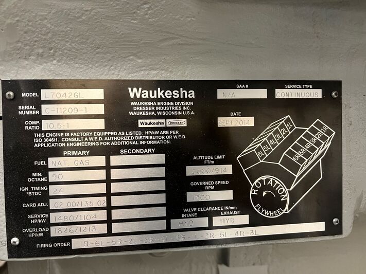 1478 HP Waukesha #L7042GL, Natural Gas Engine Zero-Houred, 2014 Manufacturer: Waukesha Model: L7042GL Year: 2014 HP: 1478.00 Stock # IH-57921 Request a Quote 8 For Sale by IronHub Surplus Record Dealer Since 2024 Contact Seller Calgary, AB Mavis Anderson-Busch 833-43...> Show Seller's Phone Number 833-436-9692 Let the seller know you found their listing on Surplus Record! View More IronHub 's ListingsDescription For sale: A zero-houred Waukesha L7042GL engine, rebuilt with OEM parts. This natural gas-fueled engine boasts a maximum horsepower of 1478 at 1200 RPM. Key components include an UG8L governor and actuator mount, exhaust manifold connection points for temperature monitoring, air filter assemblies with pre-filter insert, a Waukesha pre-lube pump, and oil filter housing. Built in 2014 and currently in disconnected operational status. Located in Calgary, AB, Canada. Request More Information from SellerGet Your Price from IronHub! "*" indicates required fieldsName*Company*Email* PhoneZip / Postal Code*QuestionMake an OfferRequests Send me a shipping quote I am interested in financingSend Copy Email me a confirmation of this inquiryBuyer Protection Use our partner Escrow.com to buy or sell equipment safelyBuyer Protection Send me info about buyer protectionThis field is hidden when viewing the formDealer Email Buyers Who Viewed This Listing Also Viewed … 1000 KW Waukesha #L7042GL, Nat Gas generator set, coreCategory: Natural Gas Or Dual Fuel GeneratorsSeller: Collicutt Energy ServicesLocation: Red Deer, AB Mfr: WaukeshaModel: L7042GLUSED WAUKESHA 1000 KW NAT GAS GENERATOR SET L7042GL ENGINATOR, WAUKESHA L7042GL ENGINE, SN C-94257-1, stock QR1221. 1480 HP @ 1200 RPM Waukesha #L7042GL, Natural gas Engine, 10.5:1 ratio, 12 cylinder, S/N C-13947/1Category: Natural Gas EnginesSeller: Collicutt Energy ServicesLocation: Red Deer, AB Mfr: WaukeshaModel: L7042GLL7042GLNSXE, S/N C-13947/1, The price is assuming a good core is returned.. 1478 HP, Waukesha #7042GL, Natural gas engine, 76670 hours, 2002Category: Natural Gas EnginesSeller: IronHubLocation: Bonnyville, AB Mfr: WaukeshaModel: 7042GLYear: 2002Available for sale is a Waukesha model 7042GL natural gas engine, built in 2002 with a maximum horsepower of 1478. This unit has undergone an overhaul at 48,978 hours and had its heads and turbos replaced at 70,913 hours. It has been out of service for approximately 10 years and some components have been stripped. A ...more 1480 HP @ 1200 RPM, Waukesha #7042-GSI, Natural gas engine core, extender oil pans, 2011Category: Natural Gas EnginesSeller: J & R Industrial Engine ServiceLocation: Oklahoma City, OK Mfr: WaukeshaModel: 7042-GSIYear: 2011Manufacturer: WaukeshaModel: 7042 GSICondition: Core HP: 1480HP@1200RPMSerial # 5283701482Comp Ratio: 8.0 - 1, Extender Oil Pans, Year 2011. 1431 HP @ 1800 RPM, Guascor RPM, Guascor SFGLD560 Dresser Siemens, Natural gas, RemanCategory: Natural Gas EnginesSeller: Martin Energy Group SvcsLocation: Tipton, MO Mfr: GuascorModel: SFGLD560Share × "*" indicates required fieldsYour Name*Your Email* Recipient's Email* Note to Recipient