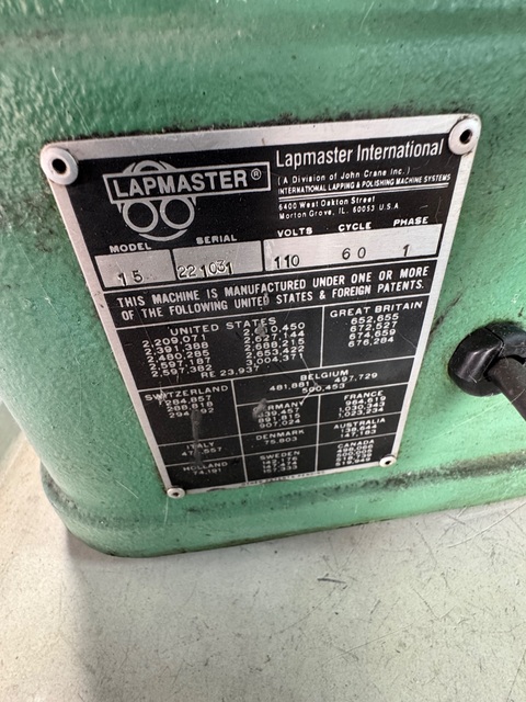 15" Lapmaster #15, Bench Top Lapping/ Polishing Machine