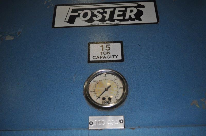 SERIAL. 20173, MODEL. 15, CAPACITY. 15 TON, STROKE. 24", OPEN HEIGHT. 30", CLOSED HEIGHT. 6", DEPTH OF THROAT. 9", AREA OF BED. 19" X 14.5", FOOT PEDAL. YES, SINGLE HAND LEVER. YES, MOTOR HORSEPOWER. 5.
