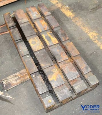 # OF T SLOTS. 3, T SLOT CENTER. 10.5", WIDTH OF T SLOTS TOP. 3/4", WIDTH OF T SLOTS BOTTOM. 1-1/2", Machine Type.Tables, Floor & Layout Plates Manufacturer.N/A Model.N/A Year.N/A Condition.Used Width.38 inches Length.122 inches Thickness.8 inches.