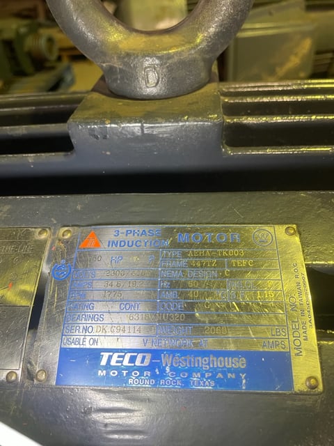 150 HP 1200 RPM Teco, Frame 447TZ, TEFC, 460 Volts