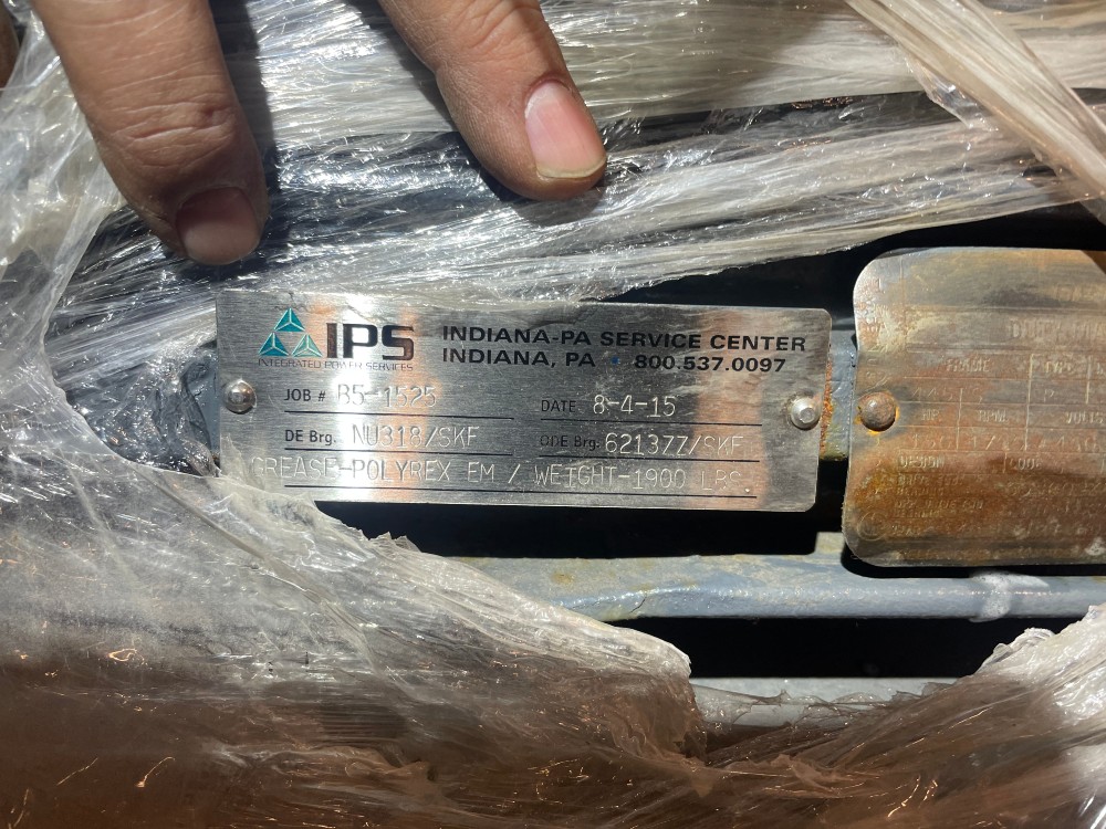 Motor is listed as New. The unit was installed and energized once but was wrong rpm for the application.