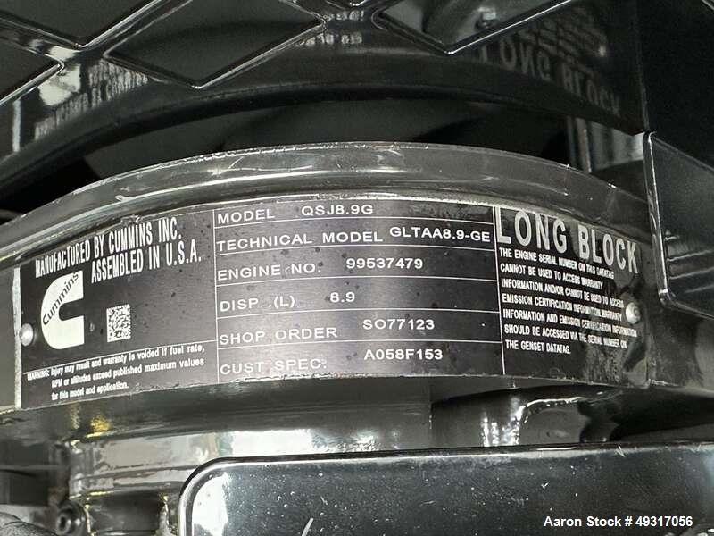 2025 Cummins QSJ8.9G engine rated 240 HP at 1800 RPM, SN-99537479, Package Serial Number B250415803, Sound Attenuated Enclosure, 200-600 Amp adjustable 100% rated main-line circuit breaker, PMG permanent magnet generator, Engine cooling radiator rated 50C/122F ambient, UL 2200 listed, PowerCommand 2.3 digital control ...more
