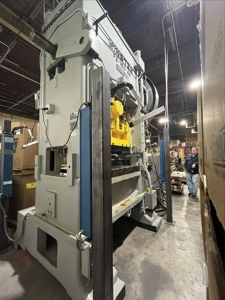 Used Bliss HP2-150 Straightside Press, this is a 150-ton mechanical stamping press machine used for heavy-duty metal stamping, blanking, and forming. Built for high-volume production, it s rigid straight-side construction, precise performance, and wide bed options, making it ideal for demanding industrial ...more