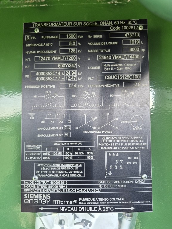 1500 KVA 24940 Primary, 480Y/277 Secondary, J-Tap, Oil (In Stock) new