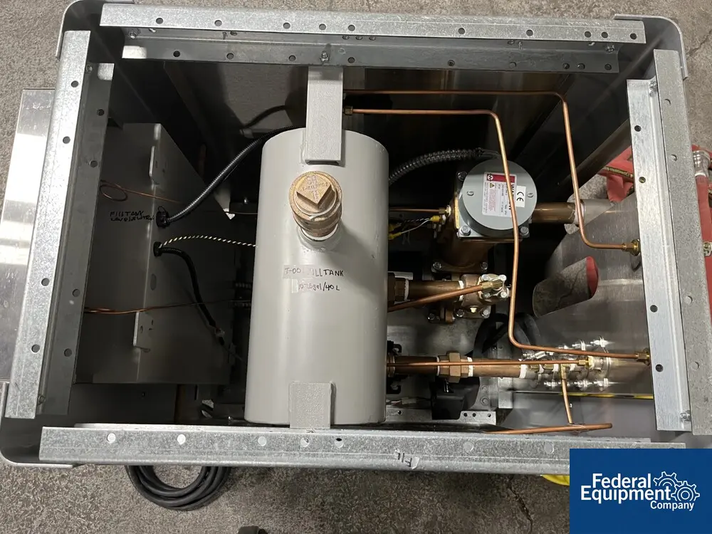 "Used 36 KW Sterling Thermolator, (2) 18 KW Circuits Model M2B2022-C (2) 18 KW Process Heaters (2) 3/4 HP Motors 45.8 FLA 480/3/60 S/N 42J0822 Approximate Dimensions: 48" L x 42" W x 56" H MISSING ONE CONTROL PANEL - SEE PHOTOS SOLD AS-IS.