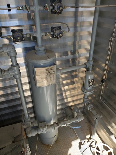 Available for sale: A RJV Gas Field Services separator designed for sweet service types. This vertical separator s a diameter of 16 inches and a length of 5 feet, with a maximum pressure capacity of 720 PSI. Built in 1997 and currently disconnected, this unit is housed and portable, located in Meota, SK, Canada. ...more