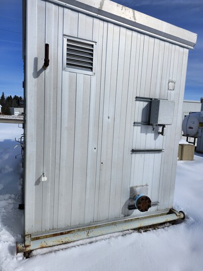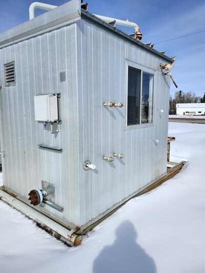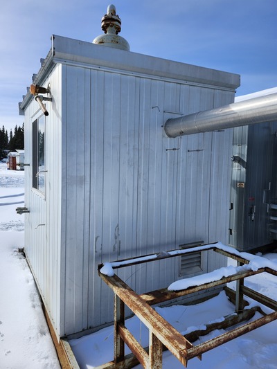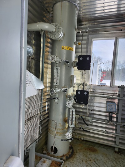 Available for sale: A RJV Gas Field Services separator designed for sweet service types. This vertical separator s a diameter of 16 inches and a length of 5 feet, with a maximum pressure capacity of 720 PSI. Built in 1997 and currently disconnected, this unit is housed and portable, located in Meota, SK, Canada. ...more