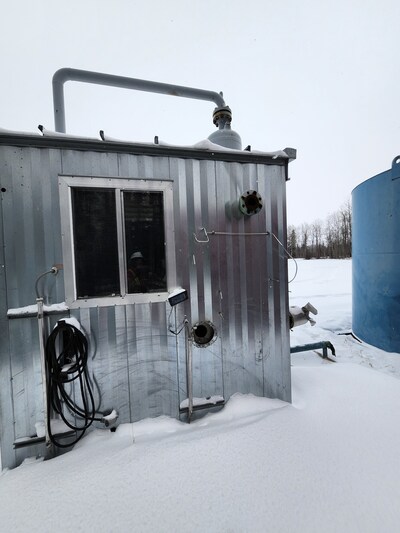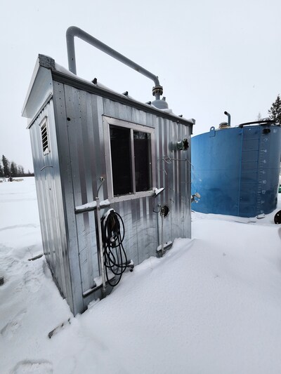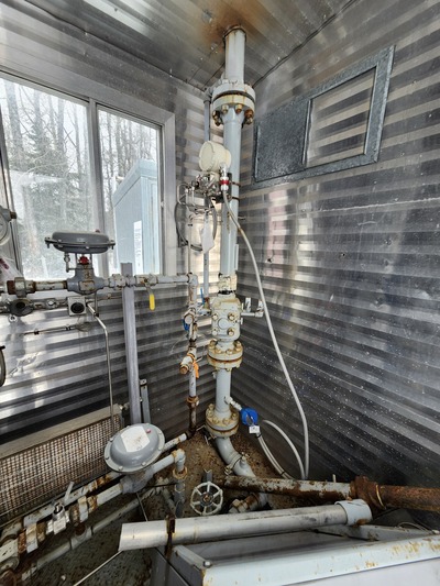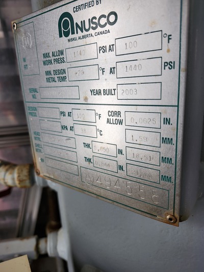 Available for sale: A RJV Gas Field Services separator designed for sweet service types. This vertical separator s a diameter of 16 inches and a length of 5 feet, with a maximum pressure capacity of 720 PSI. Built in 1997 and currently disconnected, this unit is housed and portable, located in Meota, SK, Canada. ...more