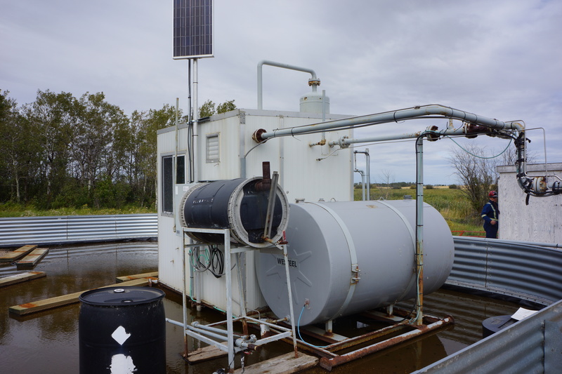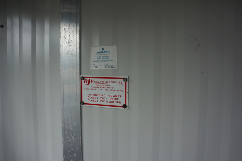 Available for sale: A RJV Gas Field Services separator designed for sweet service types. This vertical separator s a diameter of 16 inches and a length of 5 feet, with a maximum pressure capacity of 720 PSI. Built in 1997 and currently disconnected, this unit is housed and portable, located in Meota, SK, Canada. ...more