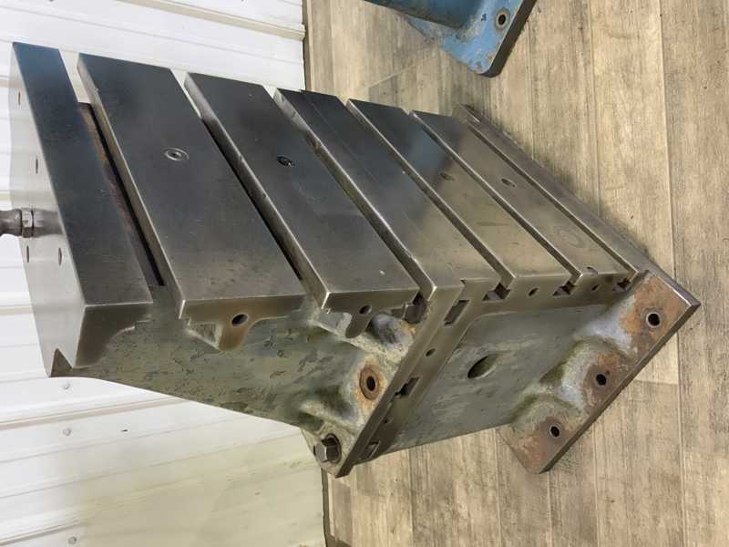 # OF T SLOTS. 3, T SLOT CENTER. 10.5", WIDTH OF T SLOTS TOP. 3/4", WIDTH OF T SLOTS BOTTOM. 1-1/2", Machine Type.Tables, Floor & Layout Plates Manufacturer.N/A Model.N/A Year.N/A Condition.Used Width.38 inches Length.122 inches Thickness.8 inches.