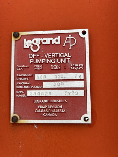 For sale: LUFKIN Pump Jack (Model Number: 160-173-86) with of 160. This unit does not have a VFD and is out of warranty. Serial number: 274.U. Located in Stoughton, Saskatchewan, Canada..