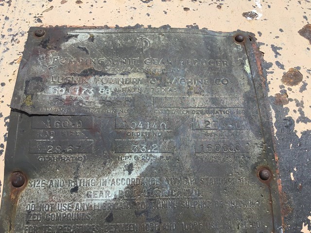 For sale: LUFKIN Pump Jack (Model Number: 160-173-86) with specs of 160. This unit does not have a VFD and is out of warranty. Serial number: 274.U. Located in Stoughton, Saskatchewan, Canada.
