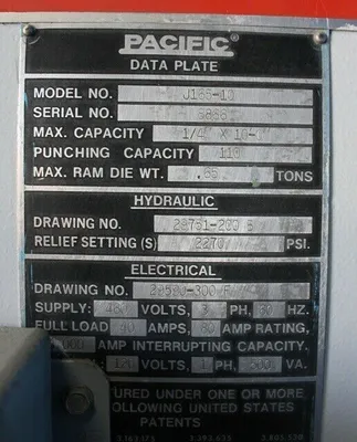 176 Tons X 10’ Hydraulic Press Brake with OT-41 CNC Control, Promecam Tool Clamping, Optoelectronic Light Curtain, Independent Y1 & Y2 Control, Integrated LED Lighting, Front-Mounted Material Supports and Foot Pedal Control on Pedestal., Bending Capacity: 176 Tons, Max Working Length: 122”, Throat ...more