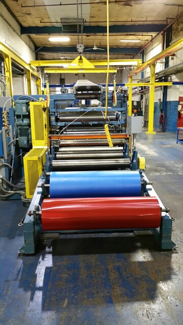 18" x 48" Adamson NFM Welding Engineers, Calender Sheet Line, Three-Roll, 130 deg., 64" Centerline height, 1999