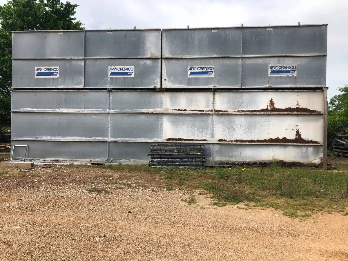 Evapco Package Evaporative Condenser. Model: ATC-1915. Serial No: 997161M. Belt No: 6B-148. Coil Test Pressure: 400 PSIG. Nominal Tons: 1915. Ammonia Tons (R-717):1360. CFM: 309,100. Refrigerant Operating Charge: 1,966 Lbs. Coil Volume: 268.