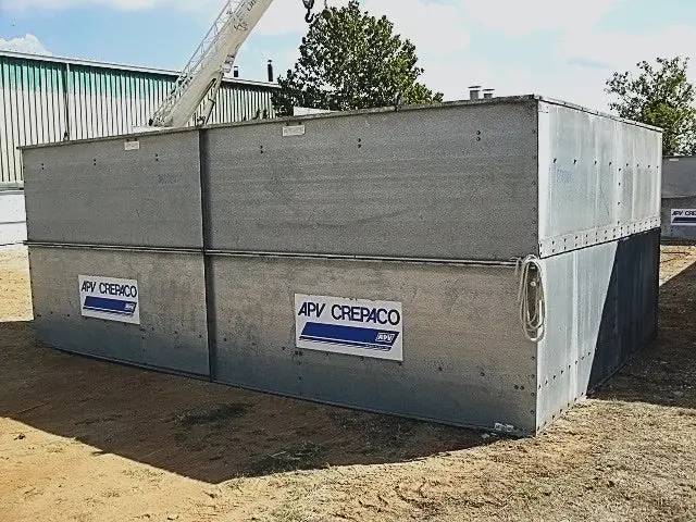 1915 Ton, Evapco #ATC-1915, Evaporative Condenser, 400 PSIG, 309,100 CFM, 1966 cu.ft. coil volume, R-717, 10 HP pump w/ 2800 GPM, 1999 (2 available)