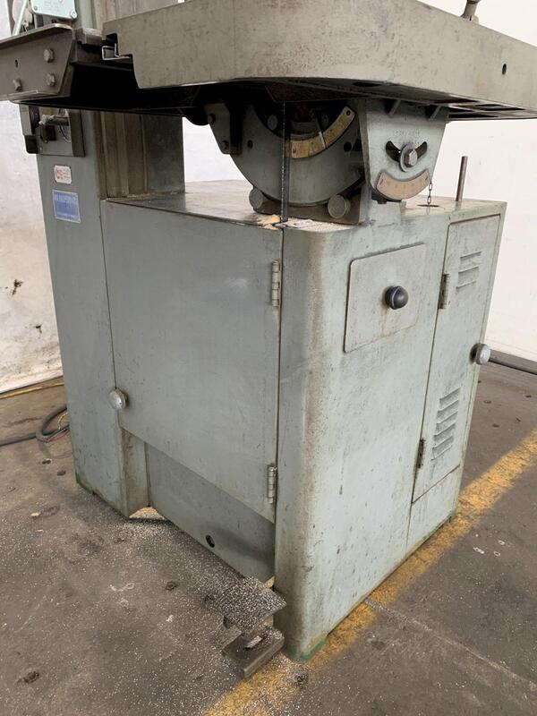 Grob 18″ Vertical Band Saw, NS18, Inventory # 10006, Model: NS18, S/N: 4851, Capacity: 18″, Max. Work Height: 12″, Table Size (Tilting): 24″ x 24″, Blade Speeds: (10) 50 – 2,030 FPM, Blade Size: 148″ x 1/8″ – 1″, Wheel Size: 18″, Throat: 18″ ...more