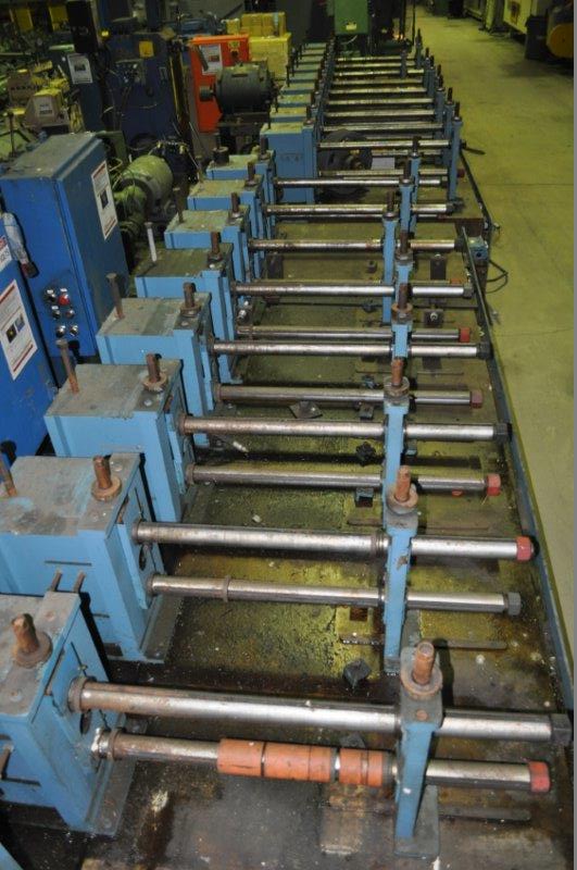 18 STAND CUSTOM ROLL FORMER, MANUFACTURER - CUSTOM, STANDS - 18, ARBOR - 1.75", ROLL SPACE - 12", ADJUSTMENT - 3", MOTOR - 75 HP RELIANCE DC MOTOR, 1750/2100 RPM, 500 VOLTS, INCLUDES:, RELIANCE VFD CONTROL, DIMENSIONS, 21' 1" L x 7' W x 8' 4" H x 23,800 LBS.