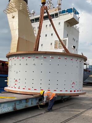 Morgardshammar pebble/sag mill, 19.35' (5.9 m) diameter x 27.88' (8.5 m) long, 2-1,877 hp (1,400 kW) motors. Currently configured as a grate discharge sag or pebble mill. No liners included. Units consists of: shell (6 pcs, three cans, split horizontally), feed end head (1 piece), discharge end head (2 ...more