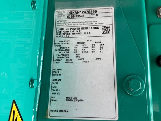 Used Caterpillar 2000kW Diesel generator. This Standby power unit s a Sound Attenuated enclosure and has approximately 623 hours of use. It provides Three-Phase power at 277/480v and is ready to ship from our Brighton, Colorado facility., Model: 3516, Capacity: 1800, Amps: 2500, Volts: 277/480v, Phase: Three-Phase ...more