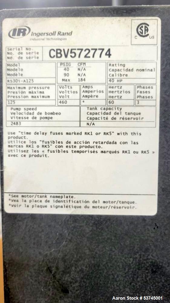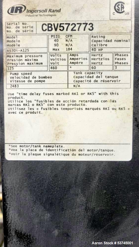 184 cfm, 125 psi, Ingersoll-Rand #RS30i-A125, Air Compressors, 40 HP, 208-230/460 V., 2018 Manufacturer: Ingersoll-Rand Model: RS30I-A125 Year: 2018 Cubic Feet Per Minute: 184.000 Pounds per Square Inch: 125 HP: 40.000 Stock # 53745001 Request a Quote 10 For Sale by Aaron Equipment Co Surplus Record Dealer Since 2024 Contact Seller Schaumburg, IL Ken Matuszak 708-41...> Show Seller's Phone Number 708-412-6077 Let the seller know you found their listing on Surplus Record! View More Aaron Equipment Co 's ListingsDescription used- ingersoll rand compressor system. consisting of: (2) ingersoll rand air compressors, model rs30i-a125 (125 psi max. compressor pressure; 184 max. cfm. 40 hp, 3/60/460v. 12,862 and 15,101 hours); ingersoll rand dryer, model nvc200a4hn; ingersoll rand compressed air filter; 3000 gallon air-receiver tank. all components built 2018. Request More Information from SellerGet Your Price from Aaron Equipment Co! "*" indicates required fieldsName*Company*Email* PhoneZip / Postal Code*QuestionMake an OfferRequests Send me a shipping quote I am interested in financingSend Copy Email me a confirmation of this inquiryBuyer Protection Use our partner Escrow.com to buy or sell equipment safelyBuyer Protection Send me info about buyer protectionThis field is hidden when viewing the formDealer Email Buyers Who Viewed This Listing Also Viewed … 142 acfm, 200 psi, Ingersoll-Rand #T-30, Two-Stage Three-Head Design Reciprocating Air Compressor, 20 HP, 5" stroke, 2000Category: Reciprocating Type Air CompressorsSeller: EcReCon Inc.Location: Pedericktown, NJ Mfr: IngersolModel: T-30Year: 2000, USED INGERSOL RAND MODEL T-30 APPROXIMATELY 20HP TWO STAGE THREE HEAD DESIGN RECIPROCATING AIR COMPRESSOR. S TWO LOW PRESSURE HEADS WITH 5-1/2" BORE AND 1" HIGH PRESSURE HEAD WITH 4" BORE ALL WITH 5" STROKE. RATED FOR 142 CFM PSI @ 870 RPM. 200 PSI MAXIMUM. RATED 117 ACFM @ 60 PSIG AND 115 ACFM @ 100 PSIG. BRUNNER ...more 500 cfm, 100 psi, Ingersoll-Rand #XVH, reciprocating air compressor, 100 HP, 2300 V., 700 RPMCategory: Reciprocating Type Air CompressorsSeller: Perry Videx LLCLocation: Hainesport, NJ Mfr: Ingersoll-RandModel: XVHUsed Ingersoll Rand model XVH reciprocating air compressor, 500 cfm, 100 psi 100 HP, 2300 volt, 700 rpm., INGERSOLL RAND XVH.JUST ADDED! 101 cfm @ 175 psi, Speedaire, Reciprocating Compressor, 2.86 m/min, 12-bar, 200 psi @ 650°F, 2013Category: Reciprocating Type Air CompressorsSeller: TNT IndustrialLocation: Long Beach, CA Mfr: SpeedaireYear: 2013Find many great new & used options and get the best deals for 30 H.P. SPEEDAIRE RECIPROCATING COMPRESSOR 101 CFM 175 PSI. Free shipping for many products!. 589 scfm, 780 psig, Sauer #WP6208 BasSeal reciprocating helium compressor, 270 HP, water cooled, 2020Category: Reciprocating Type Air CompressorsSeller: Equipment HubLocation: Stone Mountain, GA Mfr: SauerModel: WP6208Year: 2020Stock #: 181250026, Location: Columbus, Ohio, Brand: Sauer, Model: WP6208, Year: 2020, Approx. Shipping Weight: 22,000 - 25,000 Lbs., Approx. Shipping Dimensions: 14' L X 7' W X 8' H, Loading Fee: Rigging Required, Design & Configuration: 6-Cylinder, 2-Stage, Gas-Tight Reciprocating Compressor ...more 80 cfm, 200 psi, Medplus #6916-9040-204A Redundant/Lag reciprocating oilless air compressorCategory: Reciprocating Type Air CompressorsSeller: Relco IndustriesLocation: Southampton, PA Mfr: MedplusModel: 6916-9040-204ATwin 7.5Hp Compressors and Motors mounted on Vibration Isolators. Electricals, Surge Tank, Air dryers & valving, all Components are Steel Skid Mounted., 80 CFM Medplus Redundant/Lag, Reciprocating Oilless Air Compressor, Stock#RM814, Model#6916-9040-204A, Serial#OFO6927VTS-A, Type Reciprocating, Configuration Twin ...moreShare × "*" indicates required fieldsYour Name*Your Email* Recipient's Email* Note to Recipient