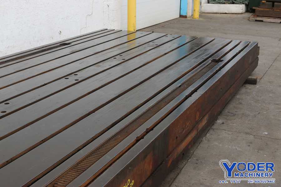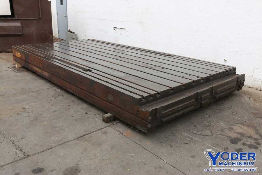 CAPACITY:, Number of Plates: 4, Length: 157.48", Width: 39.37", Thickness: 15.74", Number of T-Slots: 5, Distance Between T-Slots: 7.87", Total Pad Size: 629.92" x 39.37", Type of Material: Cast Iron, (4) Brand New Plates, T-Slotted As Per Attached Drawing, Match for End To End Assembly, Leveling Screws and Anchor ...more